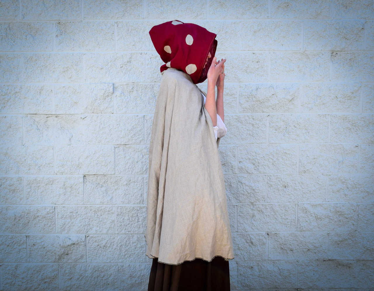 Linen Mushroom Hooded Short Cloak