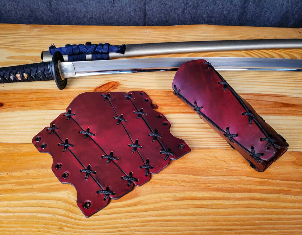 Each jerkin is closed via leather lace ties in front, and the size is adjustable via lace closure on the sides. The sleeves are stitched closed, but attach to the jerkin via separate ties.
